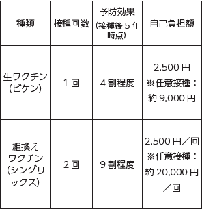 今回対象の方の帯状疱疹予防接種は今年度限りで、それ以降に接種を希望される場合は任意での接種となります。(任意での接種の場合、接種費用は全額自己負担となります)