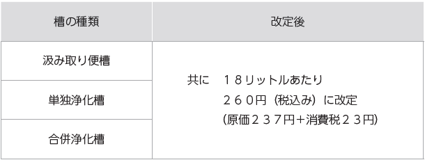 そのため、令和7年11月1日からし尿汲み取り料金・浄化槽清掃料金が下記のとおり改定されることになりましたので、皆さまのご理解とご協力をよろしくお願いいたします。