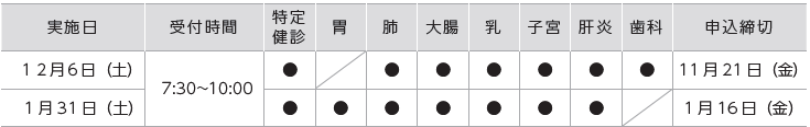 那智勝浦町では、医療機関で受診することができる個別検診と以下の日程で集団健(検)診を実施しています。