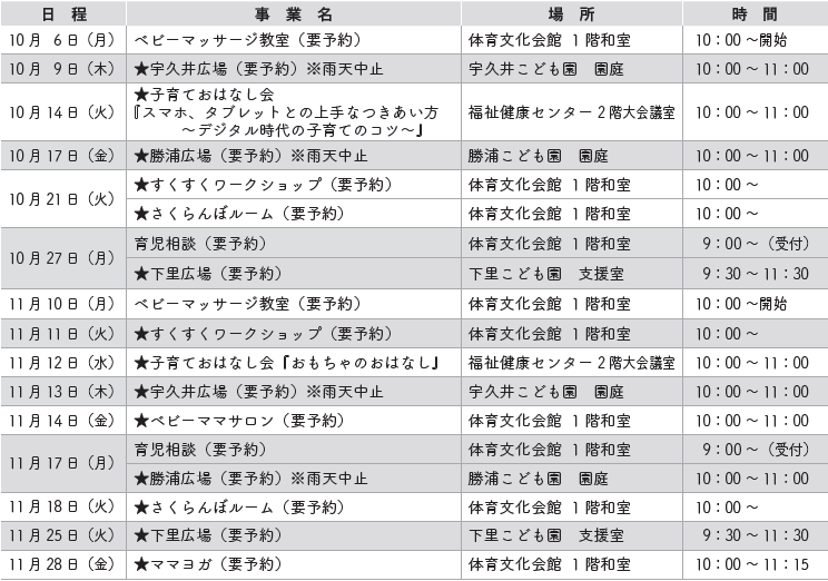 子育て 子育てイベントカレンダー(~11月) 24/33 前の記事 次の記事 発行日 : 2025年10月06日 自治体名 : 和歌山県那智勝浦町 広報紙名 : 広報なちかつうら 2025年10月号 お問い合わせ先: ・★印の事業…地域子育て支援センター【電話】52-0224 ・その他の事業…子育て世代包括支援センター【電話】29-7215 Tweet シェアする 【Information】住宅用火災警報器の設置状況等について 回答お願いします いやしの音〜町立温泉病院だより