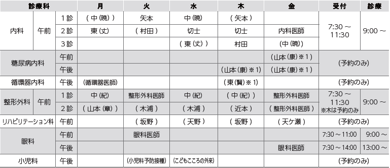 ・( )は予約診療です。