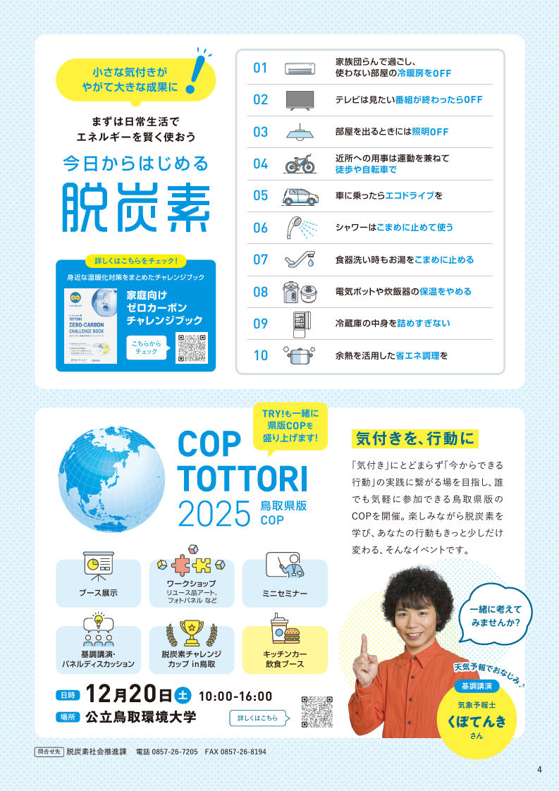くらし とっとり県政だより 2025年12月号 P.04 4/8 前の記事 次の記事 発行日 : 2025年12月01日 自治体名 : 鳥取県 広報紙名 : とっとり県政だより 2025年12月号 Tweet シェアする とっとり県政だより 2025年12月号 P.03 とっとり県政だより 2025年12月号 P.05