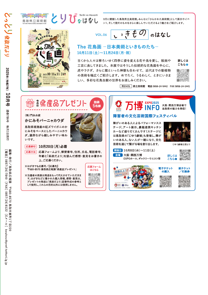 イベント とっとり県政だより 2025年10月号 P.08 8/8 前の記事 発行日 : 2025年10月01日 自治体名 : 鳥取県 広報紙名 : とっとり県政だより 2025年10月号 Tweet シェアする とっとり県政だより 2025年10月号 P.07