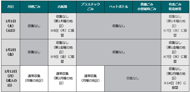 年始・祝日がごみ収集日にあたる地区は、ごみ収集のスケジュールが変更になります。