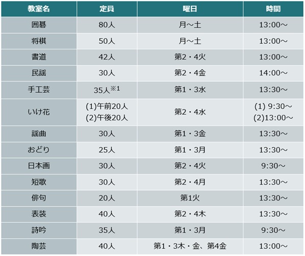 ※応募者多数の場合は抽選。1人1教室とし、複数応募は不可。定員に満たない教室は3月下旬に再募集。再募集での重複応募は可能。