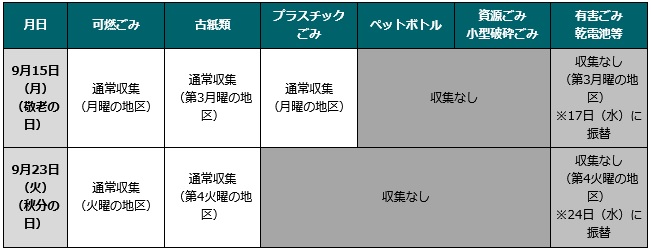 祝日がごみ収集日にあたる地区は、ごみ収集のスケジュールが変更になります。