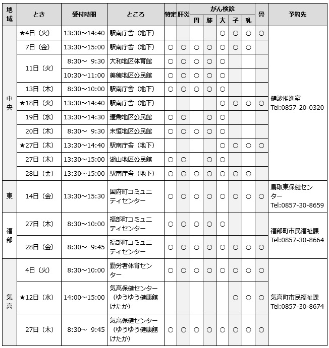 問い合わせ先:駅南庁舎健診推進室【電話】0857-20-0320【FAX】0857-20-3964