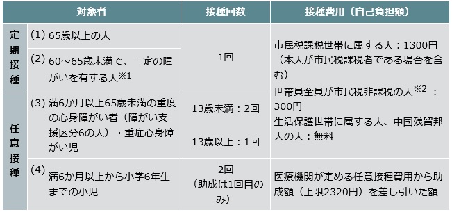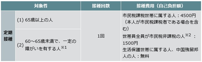 対象者・接種費用(自己負担額):