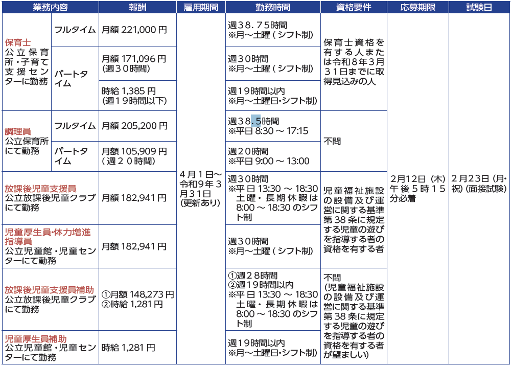 募集の詳細については各ホームページの募集要項をご確認ください。