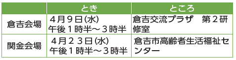 日時:4月27日(日)午前9時半~正午、午後1時半~3時