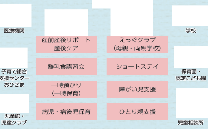 妊娠期から子育て期まで一体的に、子育てに関するあらゆる相談を気兼ねなく受けられる窓口です。市に暮らすこどもや妊産婦、その家族の皆さんの「妊活」「妊娠」「出産」「子育て」に関するお悩みなど、お気軽にご相談ください。