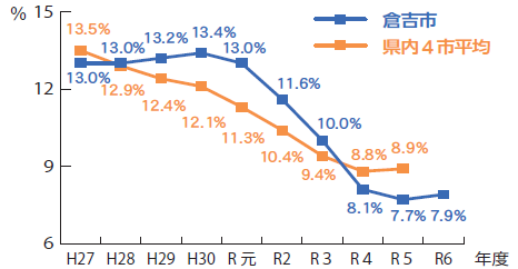 実質公債費比率は、地方債を発行するときに県の許可が必要な基準である18%を下回っており、市の財政は健全な状態にあります。