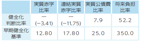 実質赤字比率、連結実質赤字比率、実質公債費比率、将来負担比率の4つの比率