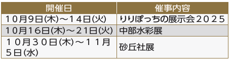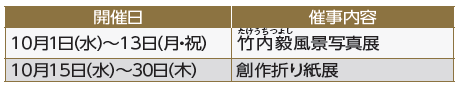 日時:10月1日(水)~31日(金)午前9時~午後9時半
