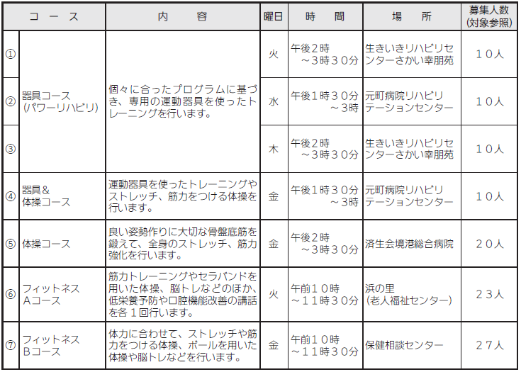 注意事項:3カ月以内に入院した人や運動を含む日常生活に制限などがある人は、主治の診断書(自己負担)が必要です。