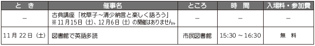 ■11月のイベント情報
