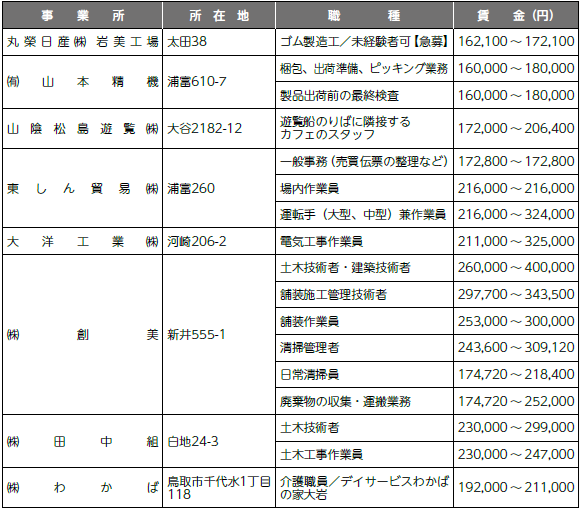 *就職の希望・紹介状の発行・問い合わせは、ハローワーク鳥取(鳥取公共職業安定所【電話】23-2021)まで。