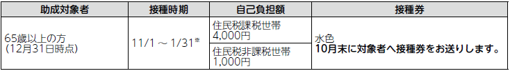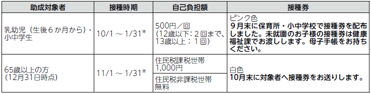 ワクチンが不足した場合は期間中でも接種できない場合がありますので、早めに受けましょう。