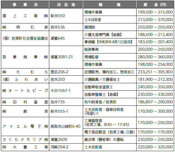 *就職の希望・紹介状の発行・問い合わせは、ハローワーク鳥取(鳥取公共職業安定所【電話】23-2021)まで。