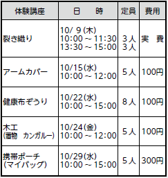 ※上記以外の体験講座や、出張講座も行います。お気軽にご相談ください。