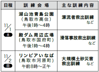 11月1日(土)・2日(日)、鳥取県に中国、四国地方9県と近隣府県の緊急消防援助隊と消防防災ヘリコプターが一堂に集結し、大規模災害を想定した消防訓練を実施します。