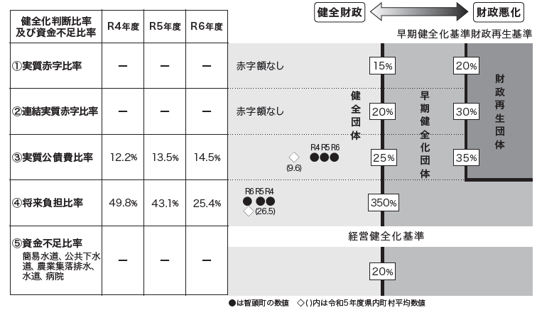 福祉、教育、まちづくり等を行う地方公共団体の一般会計等の赤字の程度を指標化し、財政運営の悪化の度合いを示すものです。