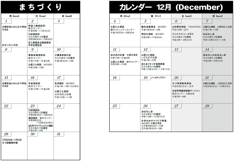 くらし まちづくりカレンダー12月(December) 20/26 前の記事 次の記事 発行日 : 2025年11月20日 自治体名 : 鳥取県智頭町 広報紙名 : 広報ちづ 2025年12月号 *日程は、変更する場合があります。 Tweet シェアする 麒麟のまちインフォメーション 第42回 香美町 人権のまど