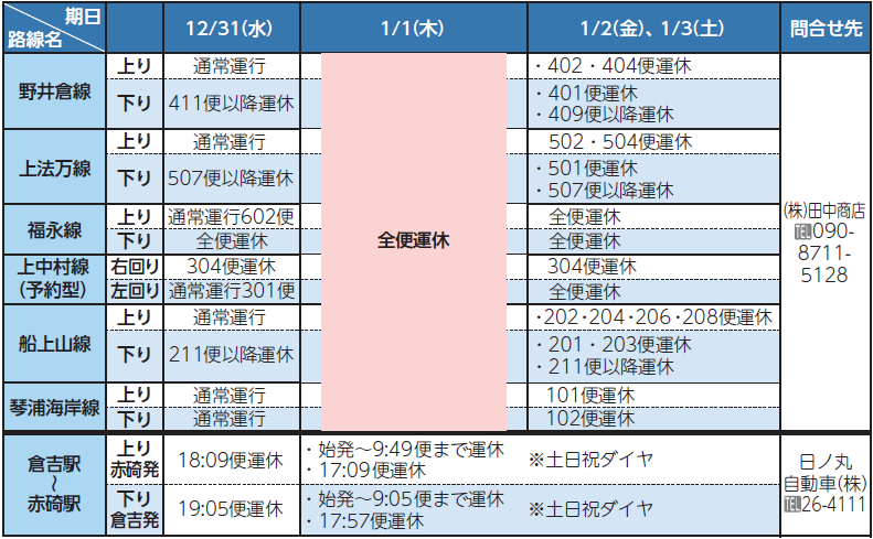 ■路線バスの運行 1/4以降は平常どおりの運行です。