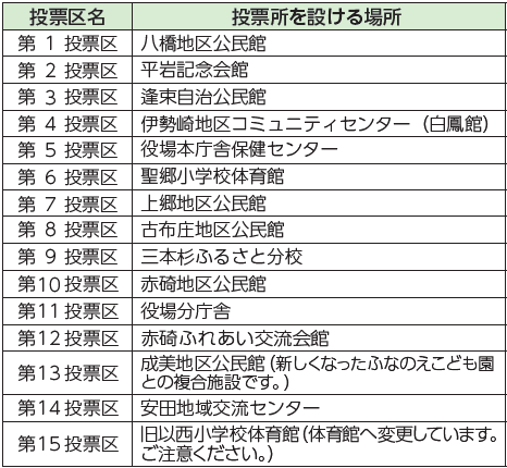 期日前投票所は、役場本庁舎及び分庁舎に開設します。