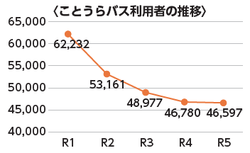 ことうらバスは、地域の移動手段として町民の皆様に親しまれてきましたが、ドライバー不足、利用者数の減少、運行費用の増加といった課題を抱え、現状のままの運行を継続していくことが困難な状況を迎えています。