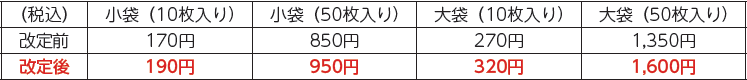 大サイズ(10枚入り):160円 小サイズ(10枚入り):90円