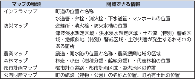 町で管理しているGIS(Geographic Information Systemの略称で、地理情報システムのこと)を公開しています。