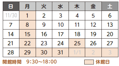 ■12月の開館カレンダー