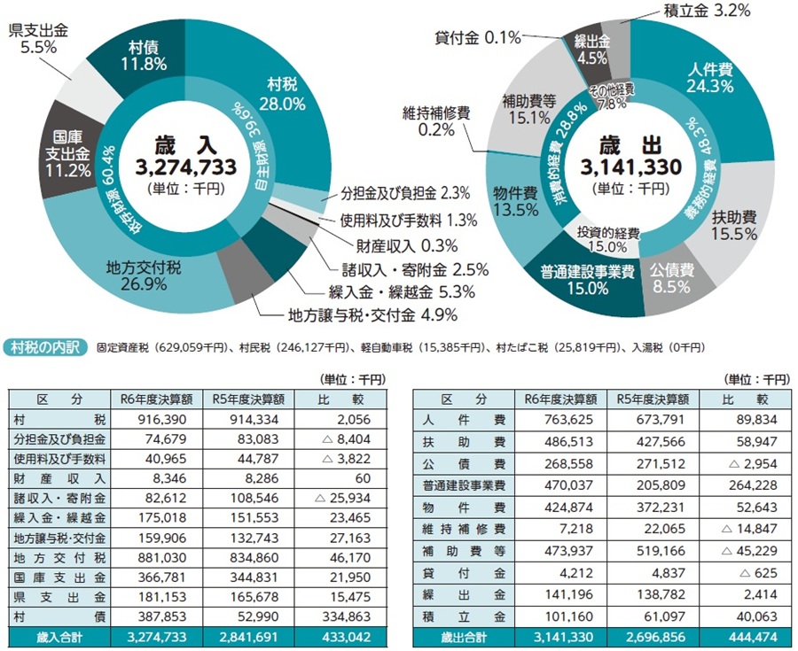 一般会計歳入総額は、3,274,733千円で、前年に比べ433,042千円(15.2%)の増額、歳出総額は、3,141,330千円で、前年に比べ444,474千円(16.5%)の増額となりました。