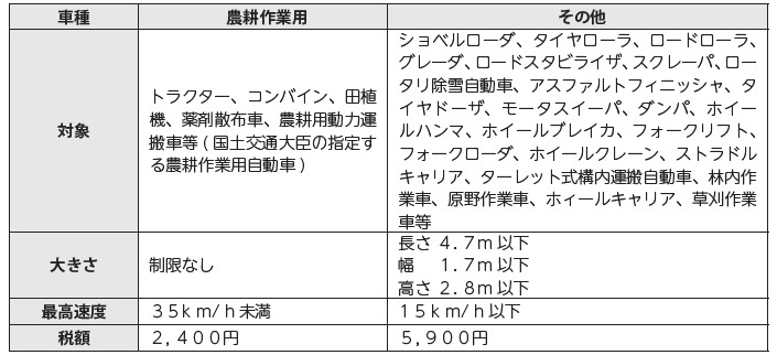 ※要件を超える場合は、大型特殊自動車となり、陸運局への登録の有無にかかわらず、固定資産税(償却資産)の申告対象となりますので、毎年1月末までに税務課へ償却資産の申告が必要です。