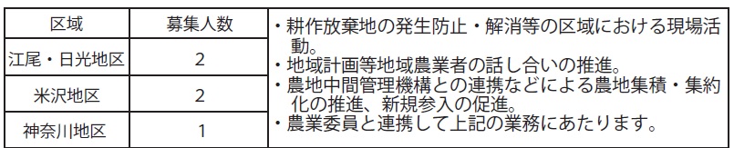 募集人数:5人(農業委員会が定める活動区域ごとに定数があります。)