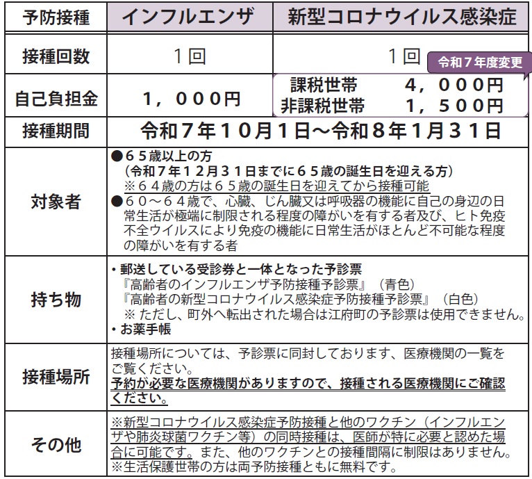 健康 65歳以上 インフルエンザ・コロナウイルス予防接種のお知らせ