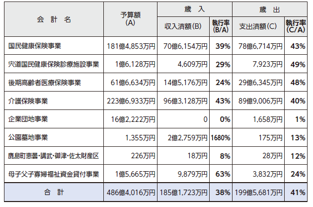 今回は、4月~9月末の一般会計、特別会計の予算執行状況と市債、一時借入金および基金の現在高についてお知らせします。