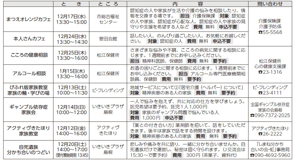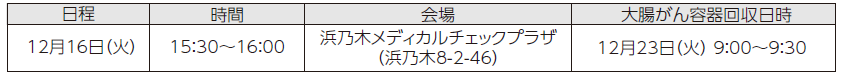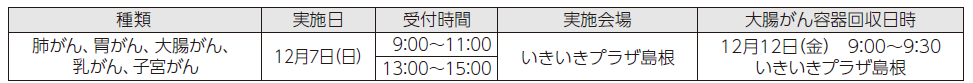 ◆12月の土曜日・日曜日がん集団検診(胃がん・乳がん検診は要予約。申し込み先は下記を参照)
