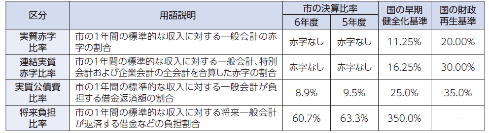 ・本市は、4つの比率のすべてで国の基準を下回っています。