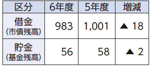 ・市の貯金である基金(財政調整基金と減債基金の合計)は、事業の実施状況により減少しています。