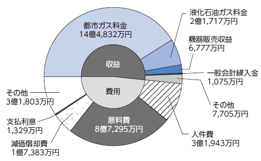 都市ガスは前年度に比べ、お客様戸数が249戸減少し11,824戸に、販売量は174,753立法メートル増加し7,920,913立法メートルとなりました。液化石油ガスは前年度に比べ、お客様戸数が11戸減少し2,117戸に、販売量は2,981.3立法メートル減少し、499,416.7立法メートルとなりました。