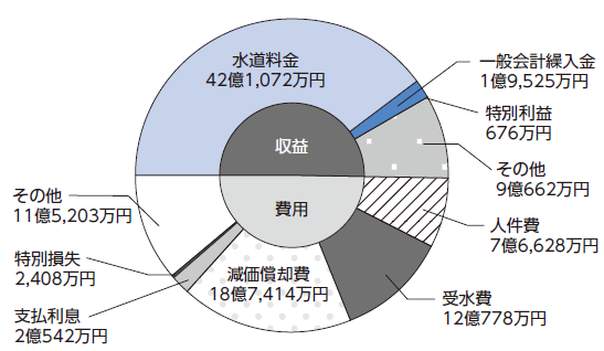 6年度末の給水人口は182,984人で前年度に比べ1,185人減少し、有収水量(※1)は19,590,021立法メートルで30,629立法メートルの減となりました。