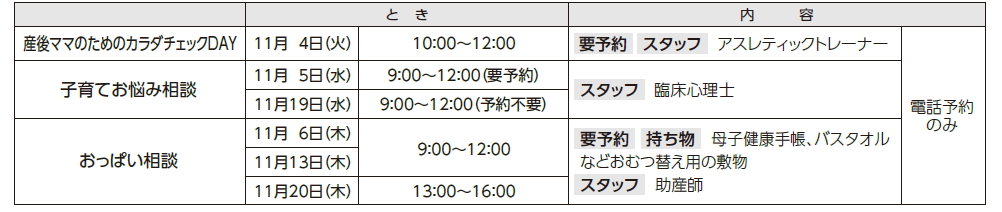 予約・問い合わせ:こども家庭支援課子育て保健係