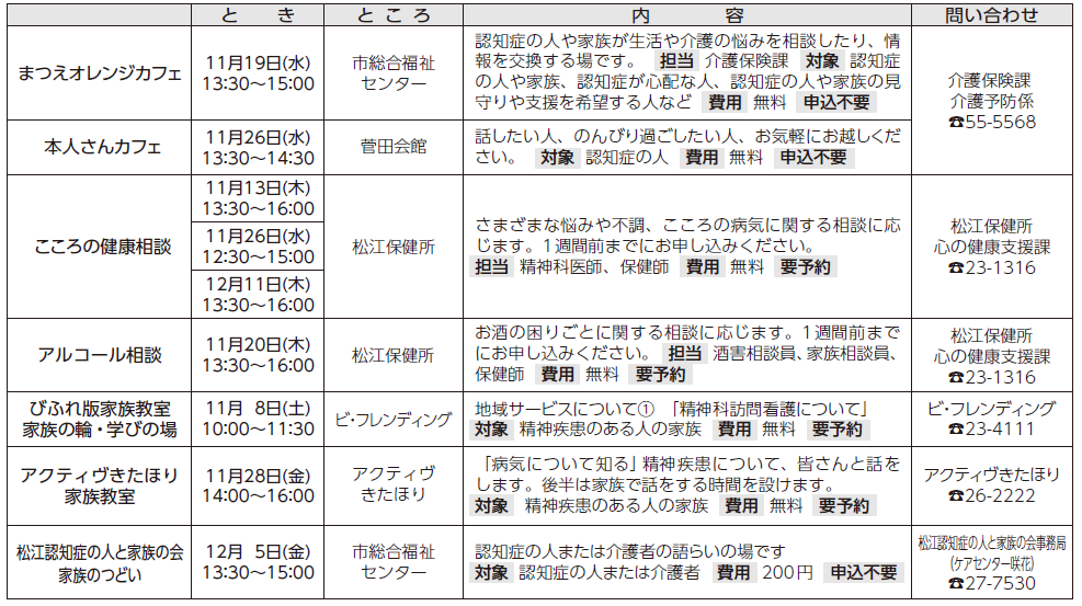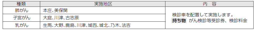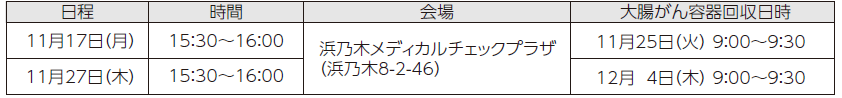 ◇11月の集団検診(乳がん検診のみ要予約。申し込み先は下記を参照)
