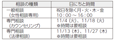 内容:秘密は厳守しますので、日常生活での悩みや困りごとなどお気軽にご相談ください。