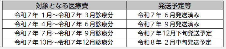 「後期高齢者医療」、「国民健康保険」の被保険者の皆さんへ医療費のお知らせをお送りします。発送予定等については、次のとおりです。