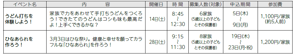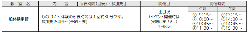 ※体験学習は、団体予約がある場合は参加できません。電話でお確かめください。