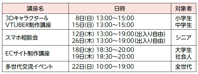 eスポーツやプログラミング、映像制作、AI活用など、デジタルに関する知識・技術を、誰でも気軽に学ぶことができる施設です。