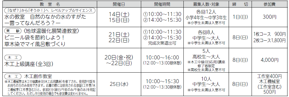 応募方法等の詳細は科学館ホームページをご覧ください。